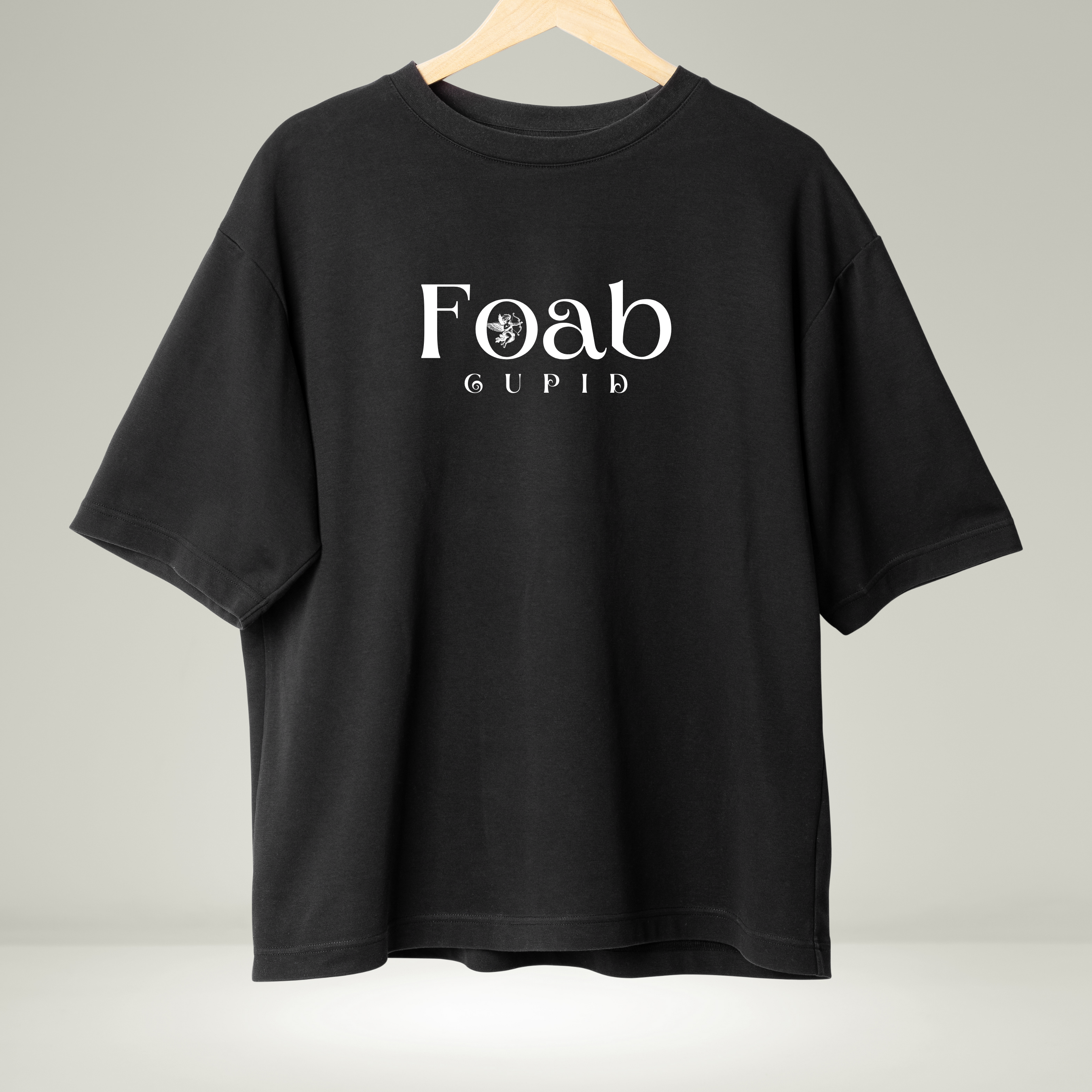 Above the angel, the word “Cupid” is displayed in a stylized, curved font with a modern, slightly graffiti-inspired touch, enhancing the urban appeal of the T-shirt. The overall composition exudes a mix of classic Renaissance-inspired artwork with a contemporary, edgy twist, making it a standout piece for fashion enthusiasts who appreciate bold statement graphics.